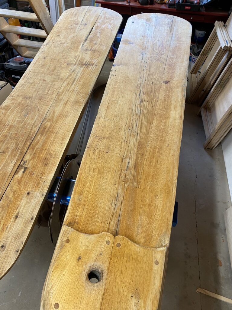De Zwaarden! Nu hij in Briltil aan een tijdelijke steiger ligt is er een stukje van de lak van de zwaarden af gegaan door een klein plastic stukje, dus is alle oude lak eraf en de nieuwe erop!